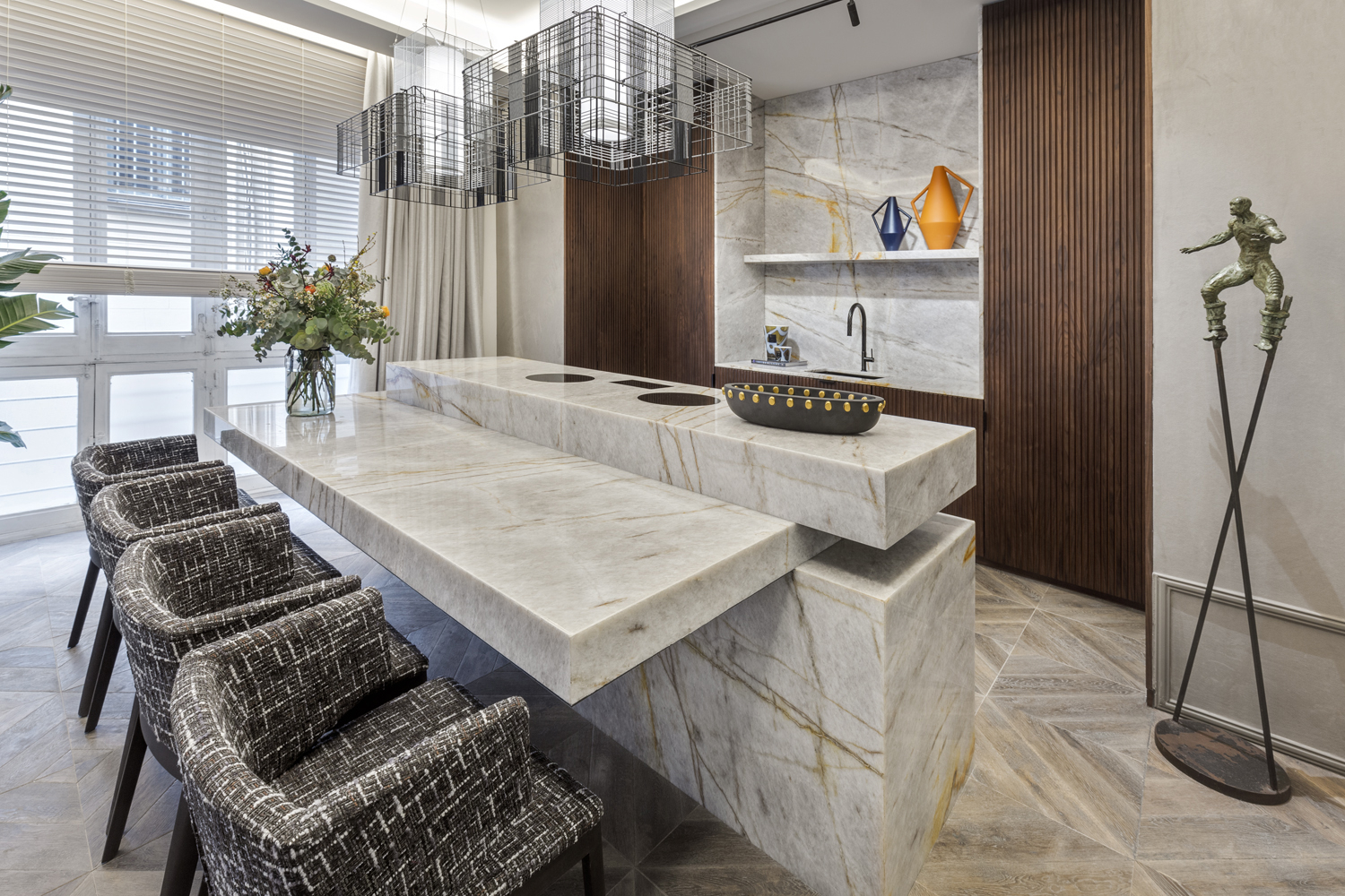 Un lienzo en blanco y crema con destellos dorados que iluminarán tu cocina.