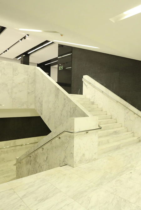 Una combinación clásica: blanco y negro, paradigma del estilo más discreto y funcional. La presencia de estas piedras naturales en el interior del Arena Corinthians convierte el tránsito entre exterior e interior en una puerta mágica, que lleva a un mundo donde toda la belleza es posible.