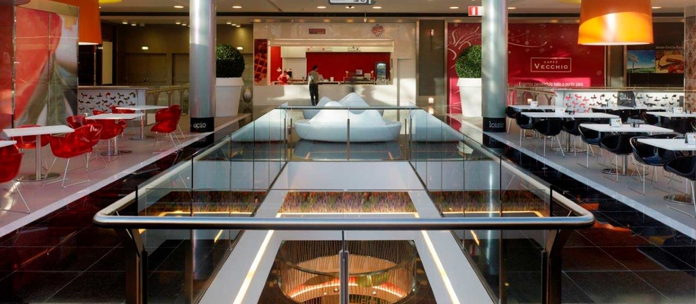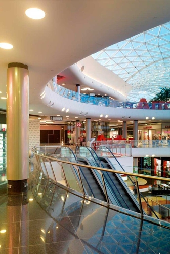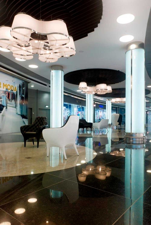 Cuando el estudio de arquitectura MMO Arquitectos proyectó el edificio que albergaría el Complejo Comercial Marineda City, no se imaginaba que el resultado de ese proyecto iba a ser tan espectacular y exclusivo. Una arquitectura espléndida despliega los diferentes espacios en torno a una luminosa plaza central, cubierta por un impresionante techo de vidrio. En los pavimentos, un granito Negro Angola de belleza inigualable y realmente especial. Los suelos poseen la estructura homogénea y ordenada de esta Piedra Natural y el brillo mágico de los reflejos cristalinos que la caracterizan, y son resistentes al máximo, algo fundamental para poder acoger sin inmutarse a los 15 millones de visitantes anuales que recibe este magnífico centro comercial.