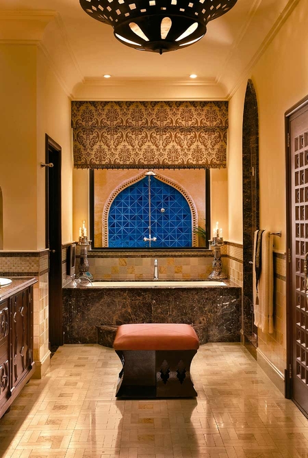 La cara más sofisticada y glamurosa del mármol encuentra en la arquitectura de instalaciones hoteleras de lujo un valioso aliado donde desplegar todo su potencial estético y sus reminiscencias históricas. Así sucede en este resort cinco estrellas, One & Only Royal Mirage Dubai. Un fastuoso complejo hotelero a orillas de Jumeirah Beach con la firma del estudio de interiorismo WATG donde materiales nobles como los mármoles Crema Marfil Coto®, Marrón Emperador y Rojo Alicante cumplen un papel destacable tanto por su majestuosa belleza como por sus inmejorables cualidades físicas.