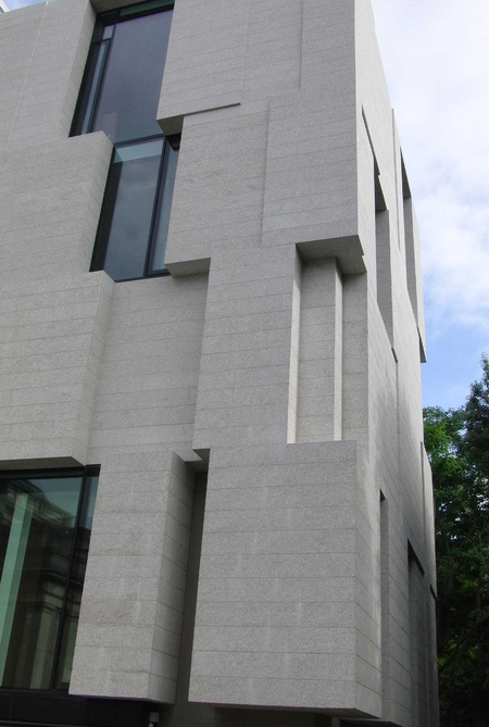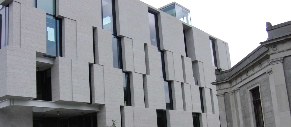 La belleza atemporal del granito y sus cualidades como material constructivo vuelven a ponerse de manifiesto de forma inteligente en este proyecto contemporáneo: el nuevo edificio de Humanidades del Trinity College de Dublín, ‘La habitación cubo’, concebido como espacio para pensar, para establecer nuevos vínculos y exhibir colecciones. Finalizado en 2010 y enclavado en el histórico campus de la Universidad de Dublín como un símbolo de la apuesta por el futuro y el progreso de tan emblemática institución educativa, granito Silvestre GT reviste la fachada en su acabado abujardado aportándole una imponente solidez, tanto constructiva como visualmente.