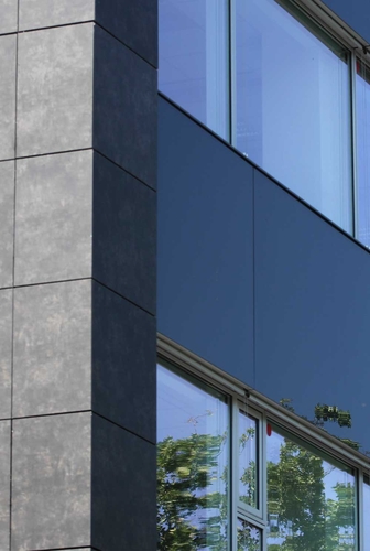 A Green House se caracteriza por ser ecologicamente correta, já que possui o certificado LEED Platinum concedido pelo USGBC. Por isso, sua fachada revestida com Techlam foi reconhecida na categoria de cerâmica de arquitetura sustentável em 2014 no CID Awards, nos Estados Unidos. Trata-se de um projeto conjunto do estúdio de arquitetura sueco White Arkitekter AB e da equipe húngara da DPi Design Kft.