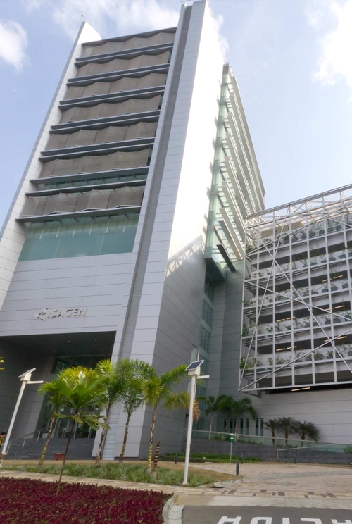 A nova sede da empresa colombiana Isagen, concebida pelo gabinete Arquitectos e Ingenieros Asociados e inaugurada em 2012, reflecte o conceito de “edifício verde” para contribuir para a sustentabilidade ambiental do planeta. Sob esta filosofia, o projeto evidencia a utilização eficiente dos recursos naturais e uma seleção meticulosa de materiais de acordo com este princípio de sustentabilidade para revestir o interior do edifício, com uma quantidade significativa de pedras naturais utilizadas como revestimento de paredes, pavimentos e elementos ornamentais.