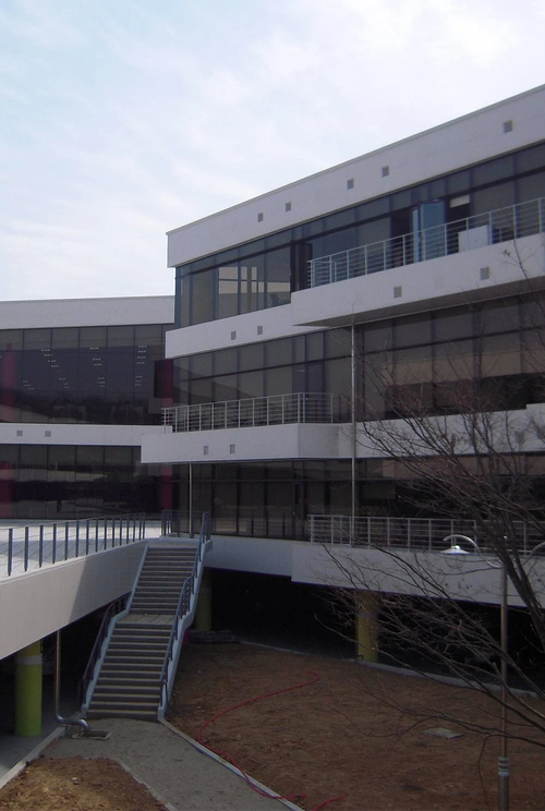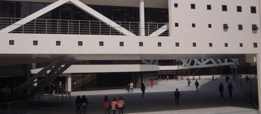 A fachada dessa biblioteca, revestida com a versátil pedra sinterizada Techlam em seu design Basic Neu, reflete a variedade de aplicações e a flexibilidade inovadora da Techlam, proporcionando funcionalidade e estética a esse excelente centro de aprendizado.